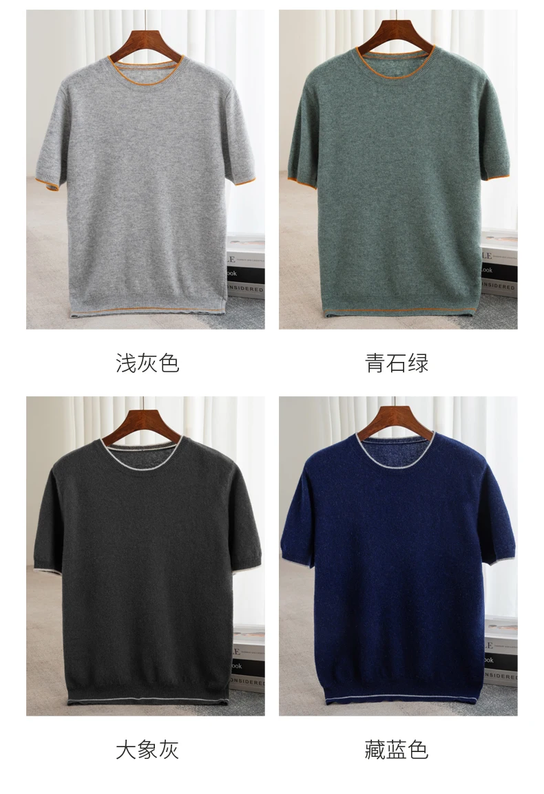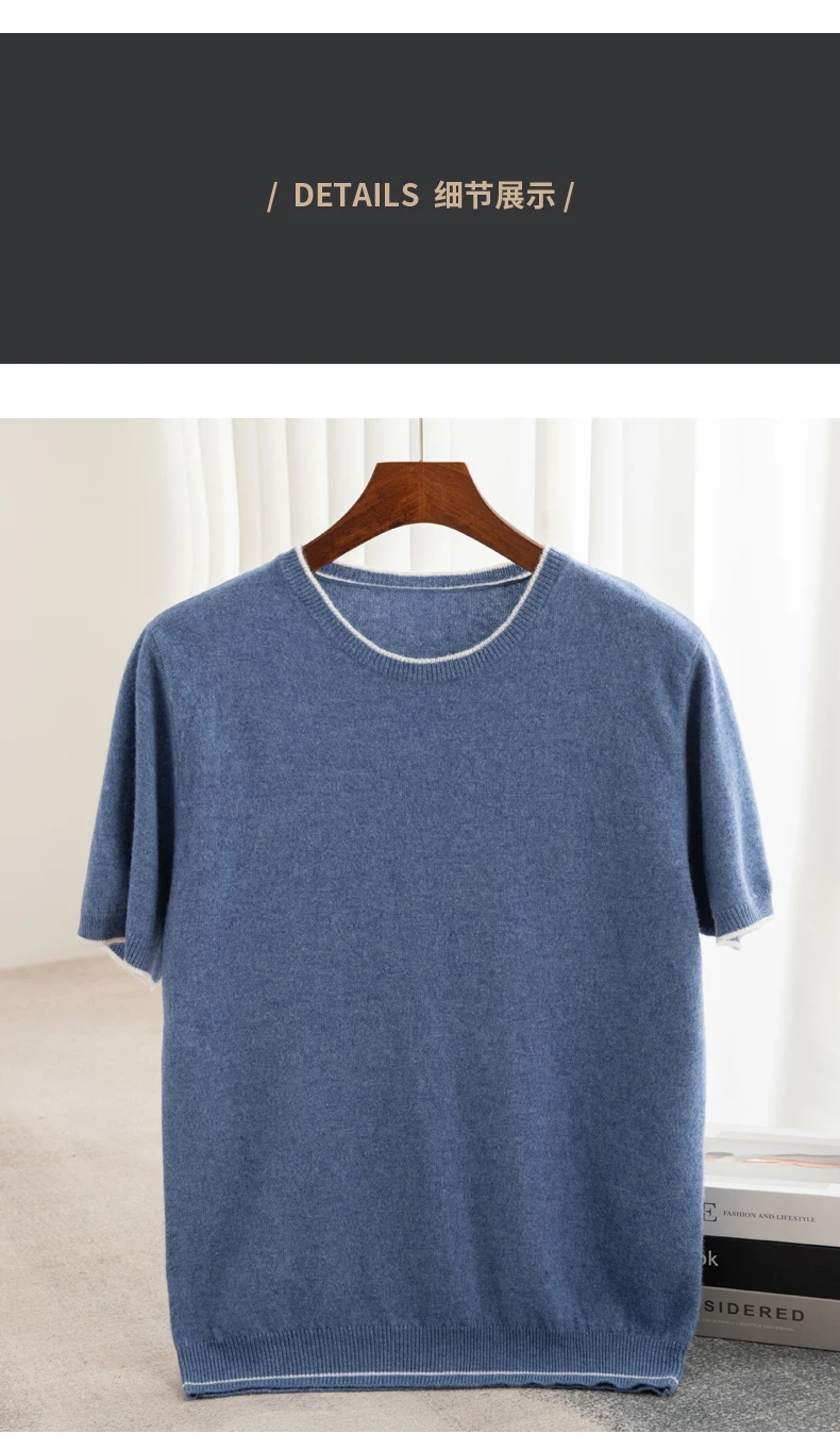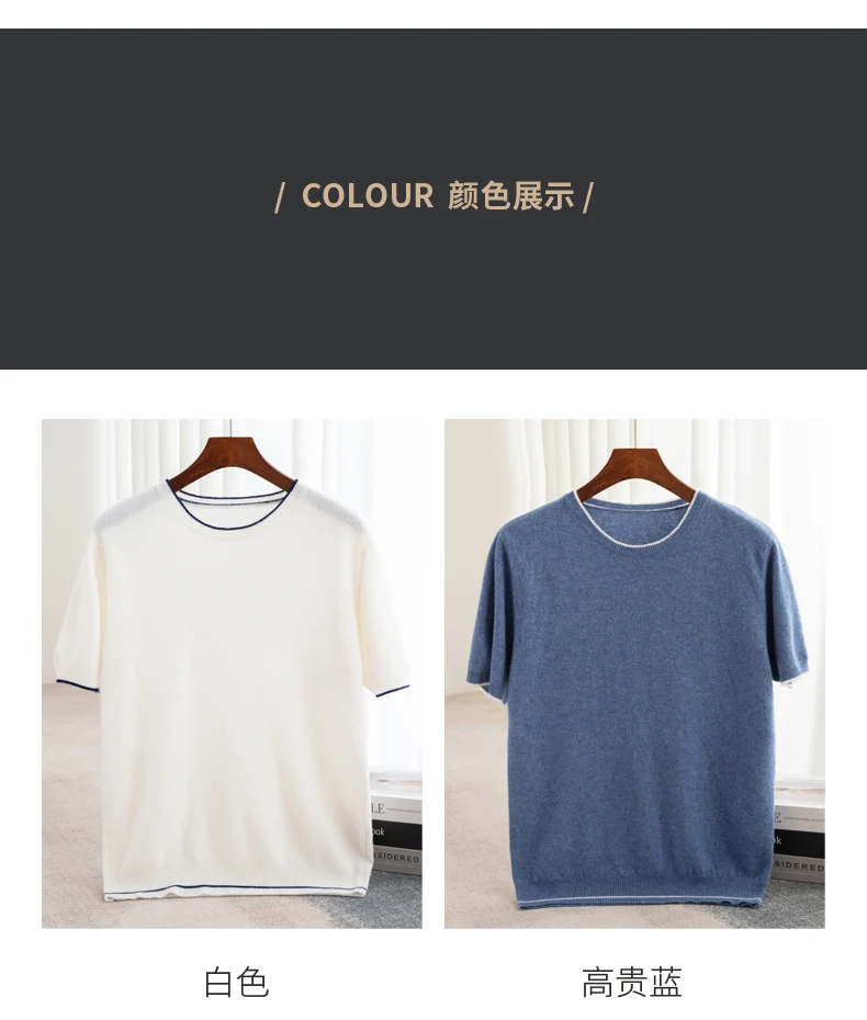 *12 needle thick fabric, medium thickness. Ordinary version, Short sleeved round neck design,Businesscasual style. Pairing: This wired knit sweater can be paired with any clothes and shoes in the wardrobe, such as jeans, casual pants, suit coats, leather shoes, casual shoes, or sneakers. It is a classic pairing that combines business and leisure.