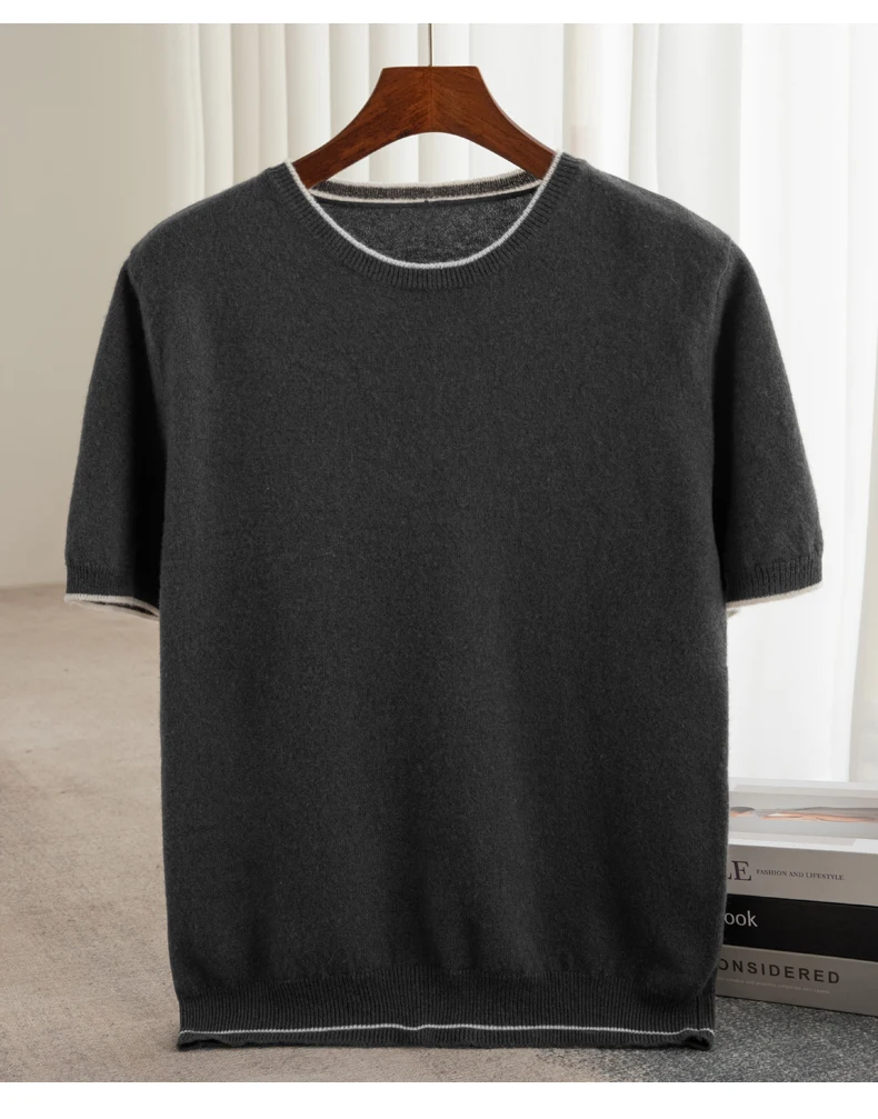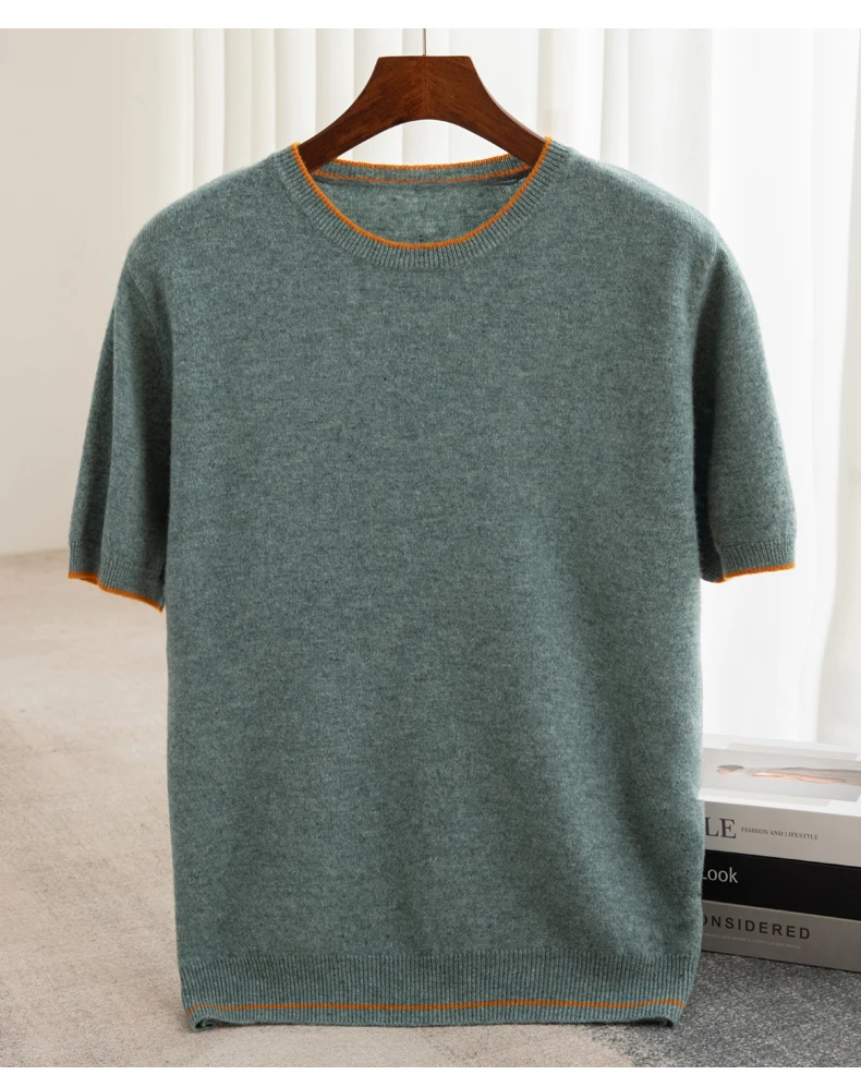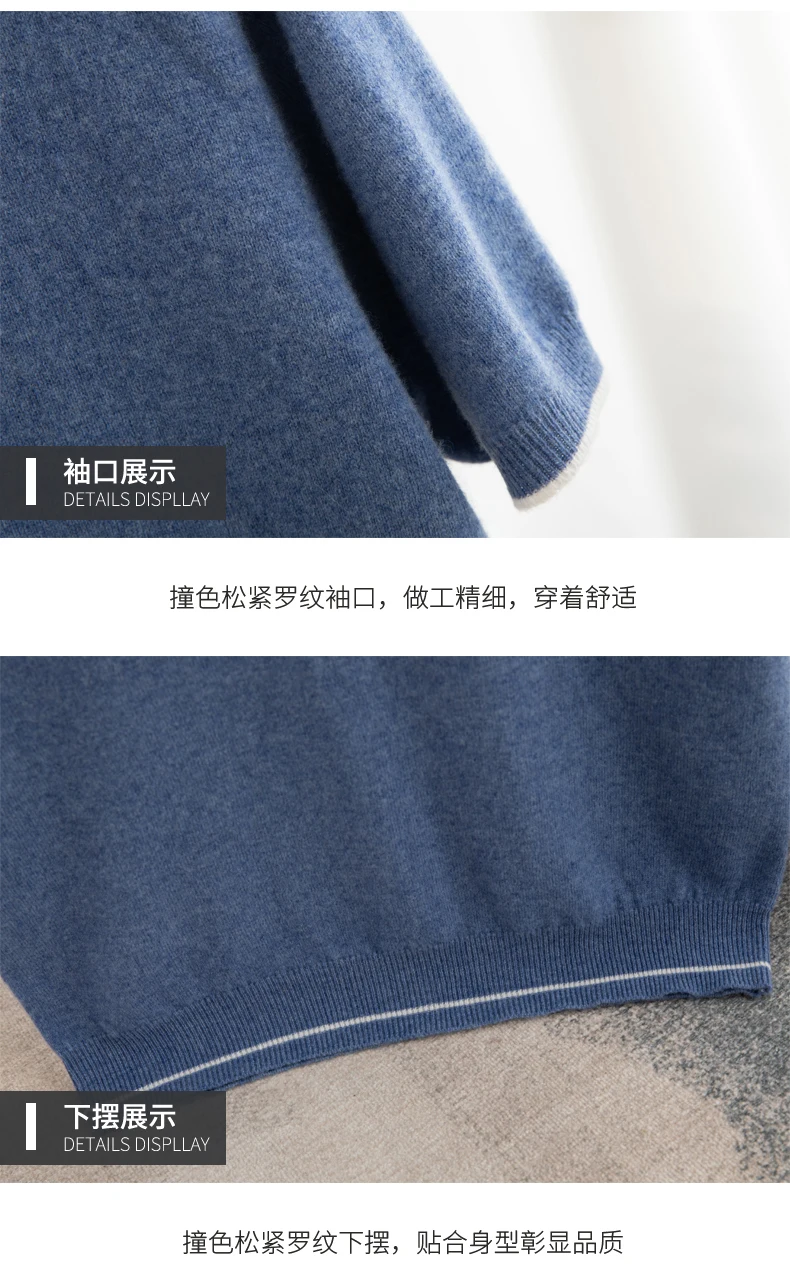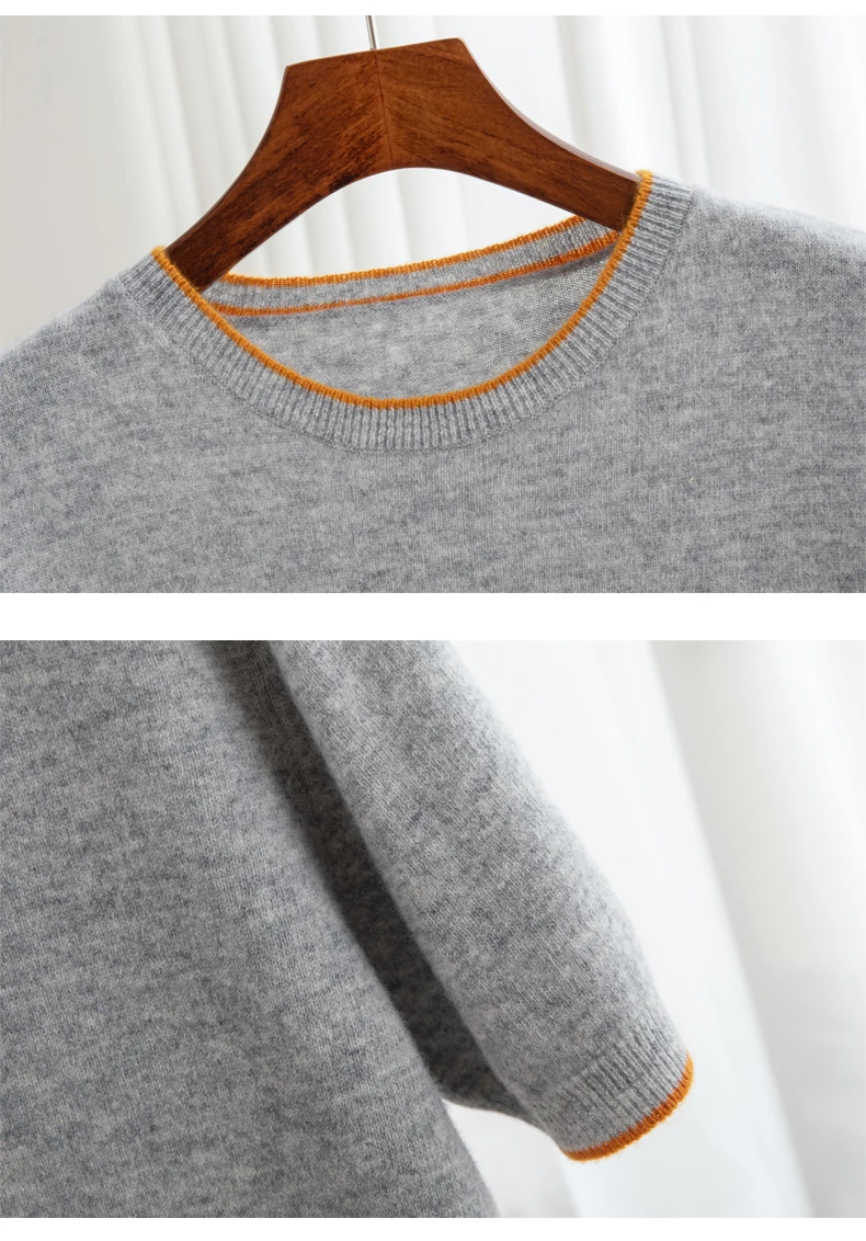 *12 needle thick fabric, medium thickness. Ordinary version, Short sleeved round neck design,Businesscasual style. Pairing: This wired knit sweater can be paired with any clothes and shoes in the wardrobe, such as jeans, casual pants, suit coats, leather shoes, casual shoes, or sneakers. It is a classic pairing that combines business and leisure.